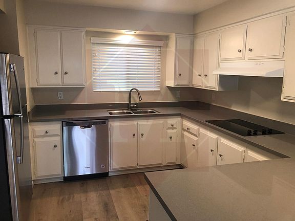 Completely renovated and updated all-electric two-bedroom, 2-bath home (half of a duplex) with energy-efficient vinyl windows and sliding glass door, new vinyl plank flooring in living room, kitchen, dining room, bathrooms, and hallway, new carpeting in bedrooms, new stainless-steel appliances, new Caesarstone countertops, new tile in the hall bathroom, and new paint and fixtures throughout. Spacious kitchen, sliding glass door off dining room to back patio and fenced back yard, and separate private laundry room with washer-dryer hookups make this well-located home in the Foothill School District a must-see. Convenient to the bike path, parks, Patterson Avenue, and Highway 101 with one carport parking space and plenty of off-street parking on a quiet cul-de-sac. W/T included