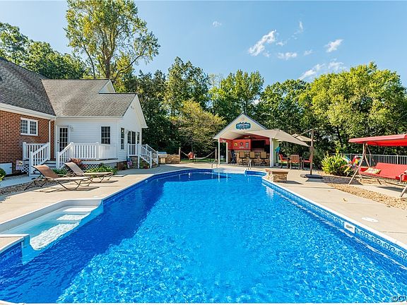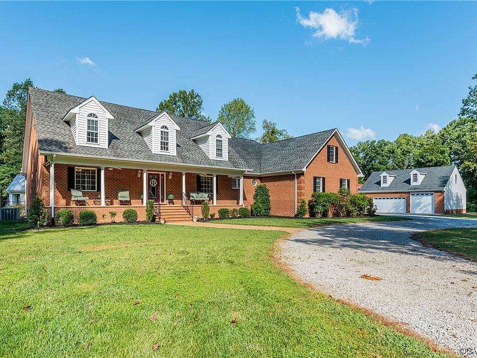 No detail left untouched! A 9.75 acre lot boasts a gorgeous Brick Cape that is tucked away on a quiet street in Prince George and is MOVE-IN READY. With easy access to interstates, schools, shopping, and more, this is a family spot you don't want to miss. The home has numerous amenities including custom cabinets and countertops, tile backsplashes, a huge Rec Room that is perfect for entertaining, and a family room with vaulted ceilings. Look out back at the in-ground saltwater pool and enjoy the view of the huge back yard that is an Entertainer's Dream! A detached 3 car garage and humongous 60x32 storage building accompany a newly built Chicken Coop in the spacious backyard. Tile and hardwoods are throughout the home, in addition to newly painted walls and many other features. The primary bedroom has an en-suite home office, that is secluded and private, which could serve as a nursery. Upstairs with the Rec room is a bonus space that could easily be used as an additional bedroom and a full bath. There are so many options for entertaining - inside AND outside! The in-ground saltwater pool area has a bath house with a full bar, a half bathroom, and a built-in gas grill. You won't want to leave home! Tons of storage and parking! You need to see this property to fully experience it all. Schedule your showing today!