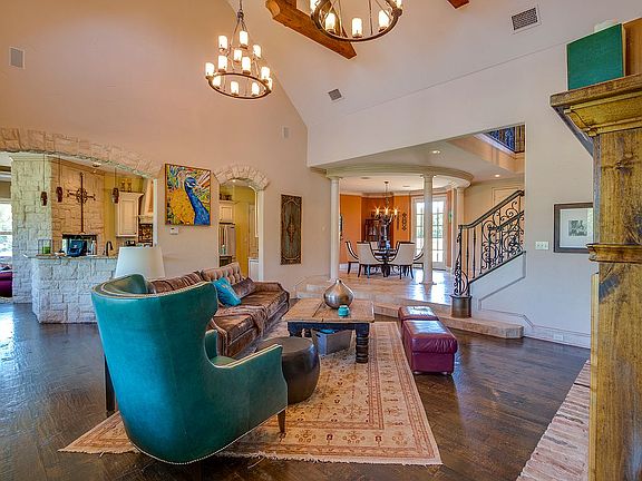 Privacy awaits you! Backing up to 126 acres, this custom home is nestled on almost 6 acres with an abundance of trees and a private stocked pond. Walk into elegance with a chef's kitchen, keeping room off of the breakfast nook, vaulted ceilings in the living room and wood beam accents. Master suite and 1 bedroom downstairs, 2 bedrooms with second living area are upstairs. Fantastic back porch to sit and enjoy the peace and quiet. The Ridge consists of 52 homes and has 40 acres of common area with trails and a private pond with dock for fishing.
