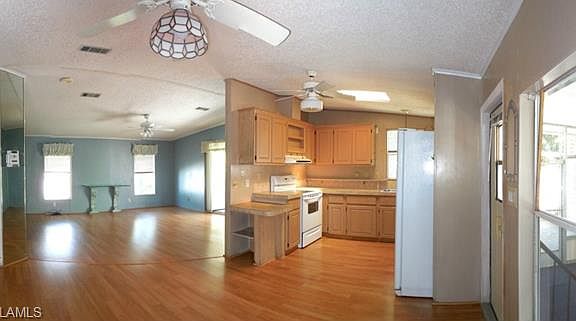 2 bedroom, 3 bath waterfront manufactued home w/dock & rarely available pool membership, located in a great 55+ community! This home has it all! Beautiful lush grounds--a natural botanical gardens in your own back yard leading to your private dock with Gulf-access! Home offers an open split floor plan w/vaulted ceilings throughout, wood laminate flooring in main living areas, skylights, 2 spacious lanais with lovely & peaceful views, large pergola w/built-in seating, 2 sheds w/workshops & attached carport. Plus, walk just across the street to the pool!