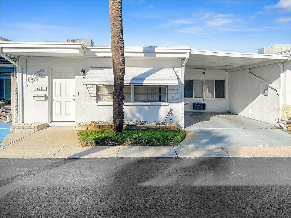 One or more photos have been virtually staged ~ Come live in wonderful Shangri La villas, a 55+ community in Largo. Great one bedroom, one bath block villa with a carport and bonus room. The bathroom boasts a walk in shower. 2017 roof, 2017 air conditioner and 2017 water heater. The bedroom has a custom California closet. Bonus room has the hookups already in place for a full size washer and dryer plus a laundry sink. Super location and minutes to Clearwater Beach. Shangri La offers a heated pool, exercise room, clubhouse with a kitchen, a small library, a pool table, shuffleboards, car wash station, and picnic area with gas grills. Lots of shopping, banking, fitness clubs, and the bus line are all a short distance. Super Walmart is nearby and close enough to walk.