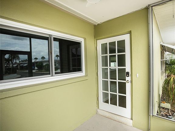Under contract-accepting backup offers. Renovated & Ready in Shangri-La 55+!    This beautifully updated 1-bedroom, 1-bath Villa (680 sq ft) shines with modern finishes and thoughtful details. Major improvements include a new roof (2025), impact windows (2023), and AC (2016). Step inside to find brand-new appliances, new flooring, fresh kitchen cabinets, and a remodeled bathroom that feels brand new to the buyer. The spacious bedroom offers a walk-in closet with a custom organizer. This unit has space for an interior laundry area (a rare perk!).     Shangri-La is a deed-restricted, socially active 55+ community with 145 residences. Amenities include a pool, fitness center, shuffleboard, pool table, and on-site laundry. Affordable living in a vibrant community just minutes to shopping, dining, and beaches.