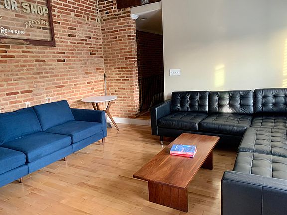 Large, light filled second floor bedroom in a 4 bedroom/2 bath townhome. Bedroom is 12' by 14' with three windows (south and east facing) and a closet. Kitchen, living room and two bathrooms are shared by the tenants. Located steps from Patterson Park, Fells and Highland Town. Lots of additional storage available in the basement, including room for bikes, luggage, etc. House electricity supplied by solar panels on the roof and a community solar program. Room can be leased unfurnished or fully furnished for an additional $150 per month. Housemate details: Roommates are Hopkins-affiliated students and professionals. They are quiet and courteous. Tenants split utilities equally, including internet and cable TV, totaling $150 per month per tenant. First month's rent and security deposit due at signing.