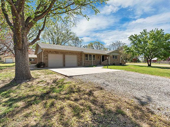 OFFER DEADLINE 8pm Thursday Apri 17! Don't miss your chance at this two bed, two bath full brick ranch with incredible potential in peaceful Clearwater! This custom-built, one owner home (1968, Kiser/Phillips Construction) sits just inside the Clearwater city limits, offering a tranquil rural setting with easy access to Wichita. Inside, you'll find two spacious bonus rooms in the basement—both with double closets—perfect for non-conforming bedrooms, office space, or hobbies. Entertaining space abounds in the main floor living area and basement family room, and also outside on the generous 0.63-acre lot! Step out on to your covered patio and view the mature trees and ample room for a garden (irrigation well!) and play area, or even future development. Investors take note: consider the potential of splitting the lot and building an additional home! A beautiful brick pathway leads you to the detached, heated brick garage/shop adding even more versatility. Solidly built and well maintained with newer custom windows and a tankless water heater. Located in the highly rated Clearwater Public School district, this is small-town living charm with big-time possibilities!