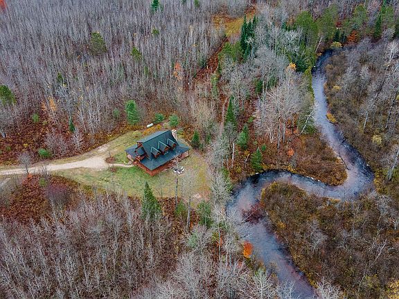 Heavenly 12 acres of pristine land, on 940' of Maple River frontage that includes a custom-built log-sided home and a 30 x 40 pole barn with a studio apartment above is a one-of-a-kind property you must see to fully appreciate the magnificence! Home features 11'' hardwood flooring, sparkling knotty pine interior, a butcher block island in the kitchen, ground floor laundry, third bedroom loft and a spectacular fireplace. The fully functional 1200 sq. ft. studio apartment is in great shape and an excellent mother-in-law suite, income producer or overflow quarters for guest. Full home walk around porch to enjoy river view! Maple River is a gorgeous trout stream that you have to see to believe. It takes hours to fly fish the property! Plenty of brookies, browns, and rainbows.
