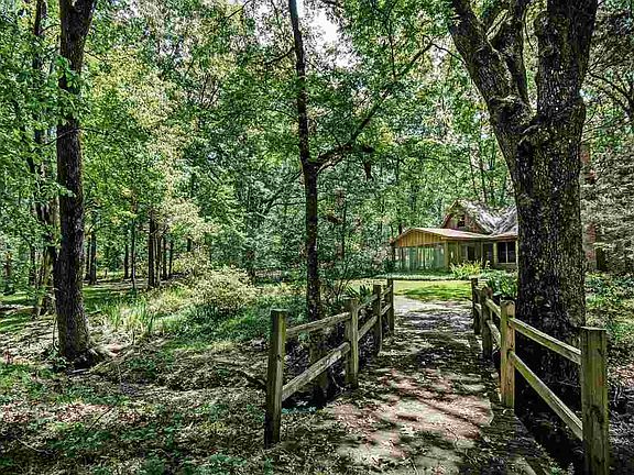 Shady, wooded country oasis in the city. Three acres, just off Northside Drive and privately situated near the end of a cul de sac; there's no traffic and only a couple of neighbors close by. This large, yet cozy 2400-sqft home offers an updated kitchen with custom cabinets, convenient pull-out shelving and granite countertops; breakfast area; formal dining room; office and master suite. The breakfast area and the large family room -- with wood flooring and handy and attractive built-ins -- both offer a fabulous view of the big backyard, complete with meandering creek. The master suite and office are tucked away privately from the living space, and the office would also make a fourth bedroom, nice den or nursery. Up the main stairway are two more large bedrooms and a bath, plus access to attic storage and HVAC equipment. There is a secondary stair just off the garage that leads to a huge bonus area (more bonus! The pool table remains!) and a large walk-in storage space. The wall of the stairs is hinged to swing away to make it easier to move items in and out. Finally, there is a side entry garage, complete with workshop. Also, the home is wired for a generator. As nice as the home is, it's the lot is even more amazing. Copious hardwoods mean shade galore; and the creek winds through the mostly natural lot, which has a front and rear sprinkler system plus a drip-watering system for plants in the back, both of which features help keep the lot green and lush. But what will really seal the deal is the large screened porch, where you'll want to spend mornings and evenings soaking in the peacefulness and solitude of this amazing property.