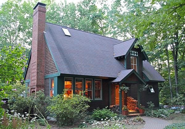A HOME DESIGNED FOR THE WAY WE LIVE! - Architect and owner designed for gathering together, cooking, dining and relaxing in the great common room with its high beamed ceiling and many windows looking out on to gardens and conservation protected woodlands. First floor bedroom is en suite with full bath. First floor laundry and storage offer convenient practicality. Second floor has two bedrooms (one with a study), separated by a shower bath. There's even a third floor meditation or guest room! All bedrooms have walk-in closets. The first floor gathering room is warmed by a soapstone wood stove set into an impressive brick fireplace echoed outside by a beautiful hearth on the south facing deck, and capped by a unique and beautiful chimney.