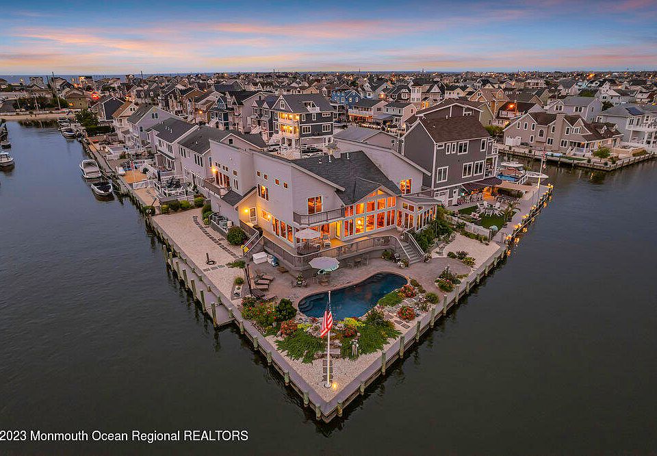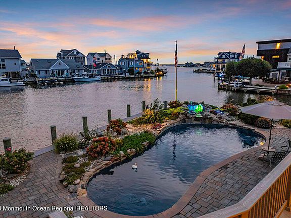 SILVER BEACH - Rare oversized corner lot with views of Barnegat Bay. A stunning gunite pool with tiered waterfall feature and expansive outdoor living space make this 4000+ square foot home a paradise at the Jersey Shore. 5 spacious bedrooms, 5 full baths and a large office w/bath and vaulted ceiling that could be used as another bedroom. This home has ample parking space and room for all your family and friends. This unique location with 267 ft of waterfront provides both views and shelter for your boat or PWC. Just 3 blocks to the Atlantic Ocean, Silver Beach offers a private Beach Association with a playground, Bay Beach, and Tennis Courts.