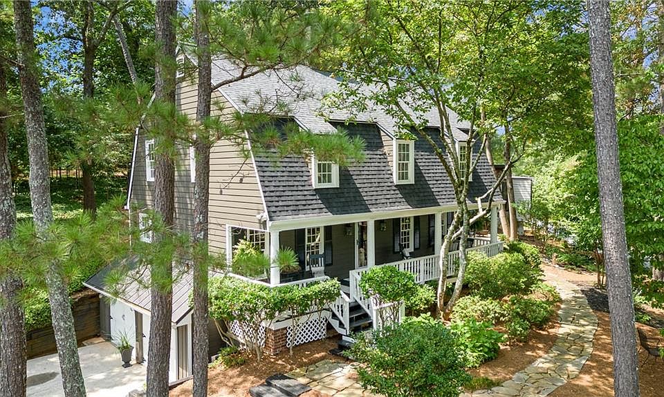 Welcome to this charming Dutch Colonial home in the iconic heart of historic Roswell. Arriving through the front garden and walking up the rocking chair porch steps, there is a feeling of serene grace with a touch of playfulness in the "piano key" porch floor. Open the front door and the home immediately radiates southern comfort and warmth from the brick landing to the Pecky Cypress paneling and beams in the family room to the genuine heart pine floors throughout the main floor. There are many thoughtul design details including beadboard walls, custom cabinet and closet organizers, the moveable marble and iron island in kitchen, soothing paint colors and custom window coverings. The main floor flows nicely around the intimate dining room with a convenient kitchen pass-through window into the bright and cheerful well-appointed kitchen through to the warm and cozy fireside family room. Upstairs is the oversized primary bedroom with renovated ensuite featuring separated double vanities, a large shower and natural light through the window nook. There are two sizable secondary bedrooms with plush carpet and professionally organized closets for guests or use as general flex space. The lower level offers a dry partial basement for generous storage and a 2-car garage. Outside there is copious additional living and entertaining spaces of your choice with the large rocking chair front porch and quintessential swing; the screened side porch with terracotta tiling; or the fully landscaped garden sitting areas surrounding 3 sides. There is even a special grilling porch with its own pergola in the shaded rear garden. Don't miss the custom rock walls and walk-ways throughout the property. The home is easily described as pristine and well maintained with fresh paint and newer hardiplank siding; recently renovated bathrooms; newer windows; 2 year old roof; and current mechanical systems. All of this is tucked away in a quiet neighborhood surrounded by nature, but conveniently close to the best that historic Roswell has to offer: Roswell Mill and its beloved covered bridge, Roswell Square and fountain, Canton Street entertainment district, Chattahoochee National Forest trails and waterways, historic homes and cemetaries, inumerable restaurants and brew pubs, shopping, etc. In addition, just a 10-20 minute drive takes you to the neighboring cities of Alpharetta and Milton/Crabapple and the Northpoint, Avalon or Halcyon shopping and dining hubs. Welcome Home!
