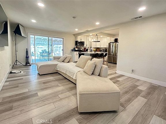 Single-story home 3 Bedrooms, 1 Bathroom, completely remodeled! Covered patio & LARGE backyard! Step into an open-concept kitchen featuring recessed lighting and new wood laminate flooring throughout... Modern kitchen w/brand-new cabinets, granite countertops, an island, and newer appliances, including a stove-oven range, microwave, and dishwasher. Bathroom has been remodeled with a walk-in tile shower; Spacious and individual laundry room! Newer central A/C, heater, windows, including a newer water heater. LARGE LOT WITH PLENTY OF SPACE IN THE BACKYARD TO BUILD A POOL, AN ADU OR TWO! Easy access to Freeways 91/215/60 interchange. Turnkey home ready for the next family!