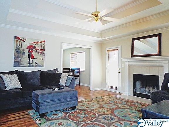 Quiet subdivision conveniently located near 565. Updated 3 bedroom and 2 bathroom full brick rancher on a large lot that features wood laminate flooring throughout the entire home. The front door opens up to a tile foyer that leads into the living room. Entertain in the living room that has a tiled fire place and double trey ceilings. Cook in the kitchen that features a new oven range and a large eating area. Retreat to the large master bedroom that has it's on master suite and large walk in closet. The double car garage, storage building and fenced yard are a bonus.