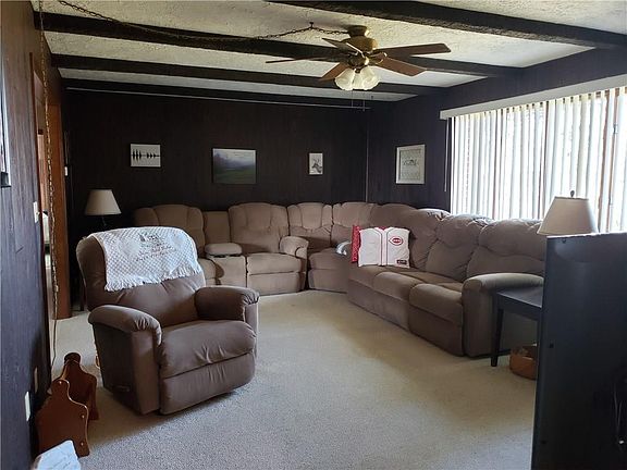 If your looking for a beautiful home in the country this is it. There are 2 bedrooms upstairs and possible bedroom in the basement. Off the laundry room is a half bathroom which leads into the kitchen, off the kitchen is a breakfast area. There is a large living room with a gas fire place, 2 bedrooms upstairs with a large bathroom in between. Go down to the basement there is a great room for family gatherings and a possible 3rd bedroom. A large area for storage . There are 2 grain bins which go with the property and a porch off the back, 1.32 acres with large mature trees cement drive way. The basement is not a wet basement the drained was plugged and backed up and water went in the basement the drain has been replaced and basement is dry the paneling has been pulled off where the water was.