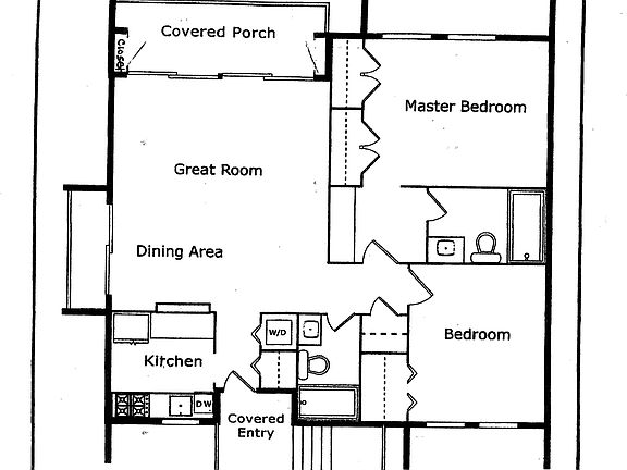 - Rooms: Kitchen, Bedroom 2, Master Bedroom, Living Room, Covered Porch/Patio