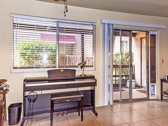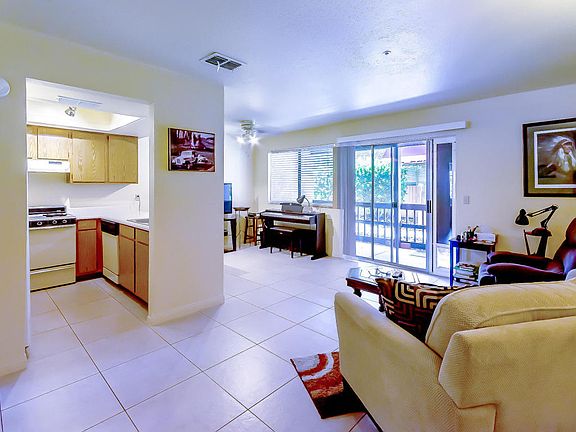 Desirable first floor unit. Light and bright with upgraded flooring (large format ceramic tile) and new paint. patio gated. Walk to movies, shopping and restaurants. Close to hiking trails. Occupy, second home, investment. Renter, currently on a month to month lease, would like to stay on, pays $950 w/utilities included.