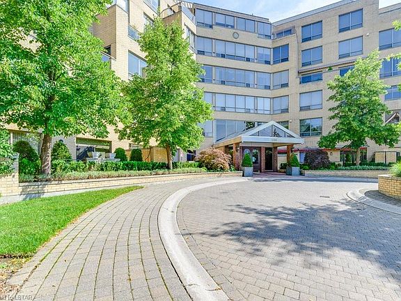 Beautiful North facing suite at Sir Adam Beck Manor. This approximately 1900 sq ft suite is one of the more popular floor plans with a master suite on one side and guest suite on the opposite side of the unit. Marble foyer leads to an open living dining combination with gas fireplace. Separate den with custom built-ins. Eat-in kitchen with granite counter tops, breakfast bar and deep silgranite sinks. The master suite features patio doors to the terrace a walk-in closet, huge master bath with jacuzzi tub, double sinks, and separate shower stall. Guest bedroom and separate home office round out this exceptional suite. Two underground parking spaces included as well as a large private storage locker as well as climate controlled wine cellar. Building amenities include a concierge, salt water pool, exercise room, party room, bicycle storage, car wash bay and beautiful gardens. Walk to Victoria Park, hiking trails, the Thames river or one of London' s many fine restaurants.
