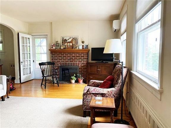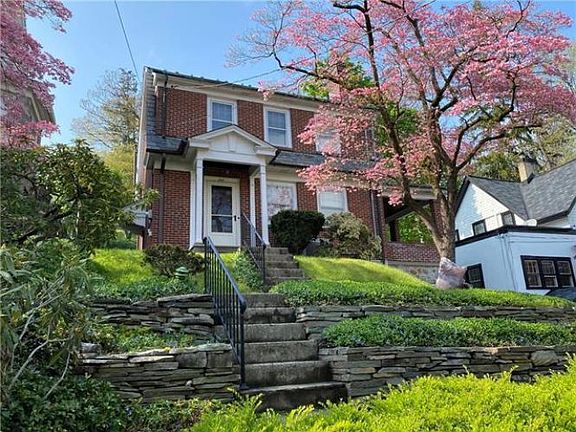 This home is a gardeners dream! Beautifully landscaped brick home located on College Hill. Front and back filled with trees, shrubs and plants. Home sits up high overlooks newly updated park and community pool. Home has original hardwood flooring throughout and has been wonderfully maintained by 40+ year 2nd ownership. Living room with wood brick fireplace and entrance to outside covered porch on side of home with beautiful views. Separate dining room and recently remodeled kitchen with half bath complete first floor. Hardwood staircase leads to upstairs ? 3 bedrooms with extra deep closets in every room, full bath with closet and 2 additional closets in hallway, 1 cedar walk-in and 1 Linen. Attic staircase leads to full attic, make it your own oasis! Full basement is unfinished but does have a toilet closet, laundry sink and washer dryer. Access to garage with extra high ceilings which can provide additional storage space. No Showings until Open House, Saturday June 25 1:00 PM-4:00 PM