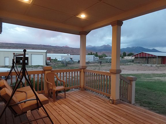 Beautiful home set on 2+ acres on the end of a cultsac. Animal friendly NO CC&RS! 72x36 6 stall MD horse barn with indoor wash stall and tack room. Room to build a riding arena or round pen. 30X50 Insulated shop building. Large garden area. nice big yard with trees. House has open floor plan with Big master suite with large bathroom, glass walk in shower with double shower heads. Large heated, jeted Garden style tub, his and her sinks and separate toilet room. Nice kitchen with pantry. Spare room has walk in closet. 1/2 bath and laundry room with wash sink is down the hall. Covered decks at the front and back of home is great for BBQS or just to sit in your porch swing and gaze at the beautiful la sal mountians. Basement is unfinished but has been framed and wired for 2 unfinished bedrooms, a hobby room, large game room, large theater room and a large unfinished bathroom with jetted tub and shower. Bring your imagination and finish it the way you would like. Please call Kristie for more info 435-260-1020