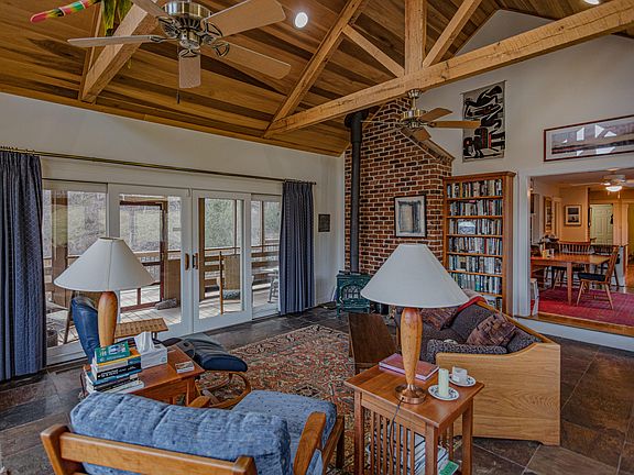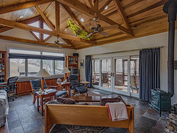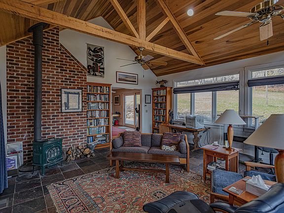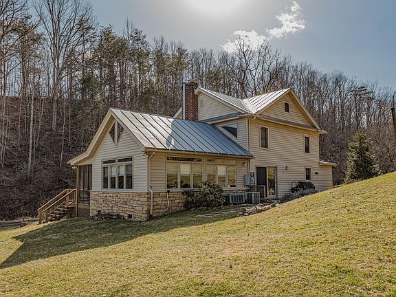 Classic farm house situated on 11 acres of southern sloping property in the scenic Kerrs Creek area of Rockbridge County offers a tremendous opportunity for a pastoral lifestyle. Enjoy relaxing living spaces indoors and outdoors including large great room with exposed timber frame vaulted ceiling, wood stove, and an abundance of windows for natural light. Front screened in porch and rear patio are ideal for peace and quiet and absorbing the sounds of nature. Several outbuildings offer storage and utility including an oversized detached garage/workshop. Surrounding land offers opportunities for stunning mountain views.
