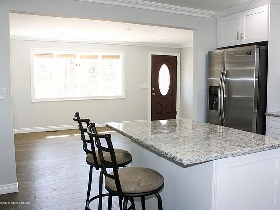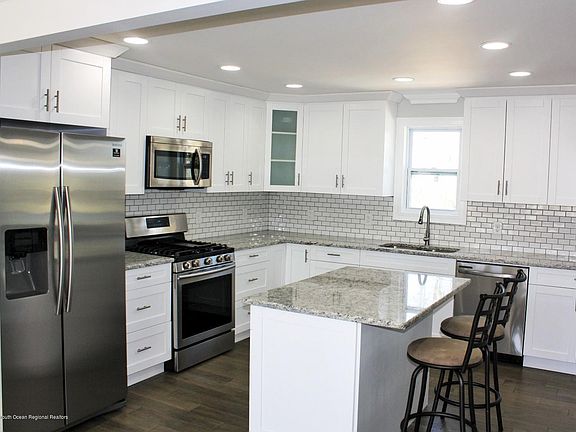 Tastefully renovated 3 bedroom 2 bath ranch home with a finished basement, a 2 car detached garage, and a large, fenced-in yard. Exquisite hardwood flooring throughout the entire home. The eat-in kitchen features a quality white shaker, solid wood, soft-close, cabinetry with crown molding, low maintenance subway tile, matching granite countertops along with stainless steel Samsung appliances and a built-in island. The master bedroom features a walk-in closet, beautifully tiled walls in the master bath, and a gorgeous oversized shower with a pebble floor. The finished basement features a utility/storage room, laundry, and a spacious entertainment area. Crown moldings throughout along with all new heating and cooling units. Located just 5-6 minutes away from the GSP.