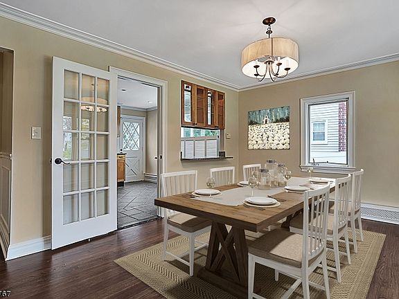 Your new home in Westfield awaits! Beautifully renovated stone facade Cape with decorative crown and base moldings, wood floors, finished basement, and spacious garage for storage, rec space or a home gym! Inviting front porch opens to a lovely foyer with traditional spindled staircase. Enjoy get togethers in the formal dining room with picture window. French door leads to the eat-in-kitchen with stylish wood cabinetry, granite counters, five burner range, serving bar and convenient pass through. Enjoy access to a lovely deck and fenced yard. Floor to ceiling stone fireplace and bay window accent the spacious family room with built-ins to showcase your treasures. Unwind in first floor master suite with spa-inspired bath with over-sized shower and chic bowl style dual vanity. Additional bedroom down, two more upstairs with full bath. Finished basement with half bath and built-ins is ready for game night! New roof!