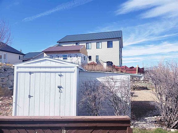 South view facing the Uinta mountain range, 4 bedroom plus a bonus room/den, 2 bath, laundry room, 2 car garage. Gas heat, wood burning stove, wired for backup generator. Front yard is xeriscaped , large landscaped backyard with deck, grass area, fire-pit area, garden beds and a gated vegetable garden. New kitchen cabinet facing and hardware, laminate plank flooring and carpet throughout. New ceiling fans and light fixtures throughout.