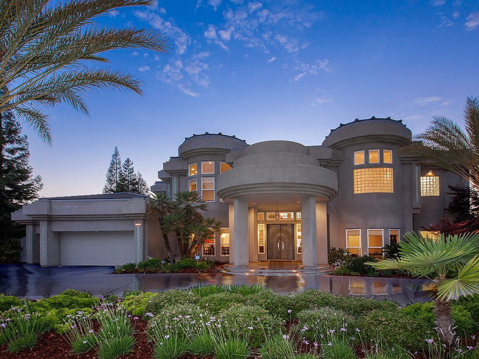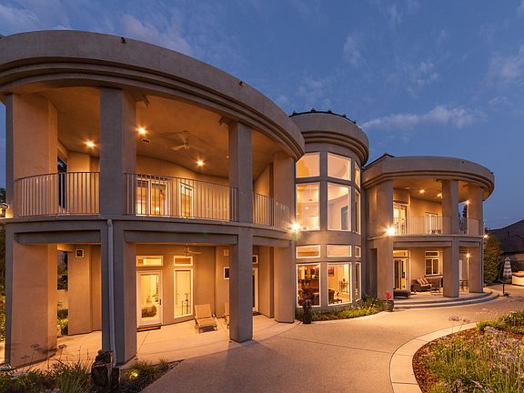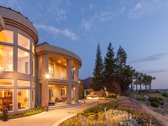 Sellers' loss. Your gain! Spent over 2 million on this gorgeous contemporary home with a view! Spectacular yet comfortable home sitting on the prestigious Bluffs! Eye catching artistic design radiates elegant taste! Grand entry with circular bar, floor ceiling windows and state of the art glass and steel sweeping staircase. Gourmet kitchen with fabulous custom cabinets, granite counters, large center island and stainless steel appliances. Two stunning master suites: upstairs one with FRPC, Spa/tub for 2 walk in double shower and custom walk in closet. Main level suite with walk in shower, tub w/air bubbler for gentle massage, granite and glass tile counters walk in closet and private patio. Library/5th bedroom (lower level) w/custom book case. Bonus room off of 5th bedroom/office. High end custom fixtures. Designer paint and carpet. 2 patios, 2 balconies. 4 car garage. Clovis schools! Prepare to be impressed!