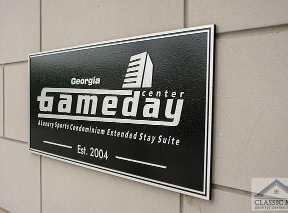 GAMEDAY 301 is a 2 bedroom 2 bath suite with Downtown Athens views on Broad Street side of the building. 2nd bath is handicap accessible. Large window in living room and covered balcony. Price includes all appliances, furniture, electronics, housewares and linens. Members have access to catered (by Porterhouse) home game tailgate parties for each home game in on-site Club Room. Members have access to Luxe shuttle van. On-site housekeeping and dry cleaning available. Small work out facility. Lobby renovated in 2016. Club Room renovated in 2017. New security cameras and door lock system installed 2018.