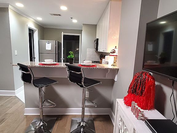 Georgia Gameday Condo for sale in Athens, Georgia Condo located in downtown Athens, GA, next to all the great shops, restaurants, and bars. Located at 250 West Broad Street, Athens, GA. Unit 526 Approximately 450 square feet 1 bedroom, 1 bathroom, full kitchen, living room, laundry closet, and balcony Perfect for families coming to games, for your own student, or to rent out. Don't miss this opportunity to purchase a great condo in Athens, GA Newly renovated 1 bedroom, 1 bathroom. Sleeps 4. Bedroom with queen bed. Queen sleeper sofa in living room. Just painted and new flooring in living room and bedroom. Bathroom and kitchen with white tile. New living room furniture, new barstools, all new linens, new flatscreen TVs in bedroom and living room, and new console tables with storage space. Ottoman in living room also provides additional storage. Full kitchen has stainless steel appliances, tile backsplash, white cabinets with silver G knobs, and granite countertops. Laundry closet includes washer and dryer, ironing board and iron Fully furnished, including linens, appliances, electronics, dishes, and household items included in the price. We did not hang anything on the walls, so buyers could personalize. The Gameday Center is the only property in Athens with 24/7 concierge frontdesk. They also have onsite housekeeping and handyman services. Security cameras are located throughout the building, and there is a 5-level onsite parking deck. This condo comes with one reserved covered parking space on the 4th parking level. Gameday also has an optional onsite management company that will lease the condo for you if you so desire. The onsite management company leases nightly, weekly, monthly & long term. The condo is walking distance to Sanford Stadium and the UGA campus. Association dues are about $260 per month and cover water, sewer, trash pickup, common area maintenance, insurance on the building, hi-speed internet access, satellite TV, security, and parking. Price: $284,999 Annual taxes: approximately $3,000 Monthly association days: $260 Private insurance required for condo. Proof of insurance must be provided to the HOA. We are not listing with an agent but will offer 2.5% to buyer's agent. Contact me with any questions. Note: exterior and lobby photos are from the Gameday Facebook page. I do not own the rights to those images.