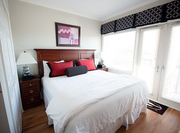 Two Bedroom Two Bath with large Double Covered balcony on Broad Street in Downtown Athens. Large window in bedroom. Views of UGA, Sanford Stadium, and Downtown. GAMEDAY condos are fully furnished with all the furniture, linens, appliances, electronics, and household items included in the price. Optional on-site management company will lease the condo for you when you are not there. Walk to Sanford Stadium and UGA campus or take the Gameday luxury shuttle. Association dues cover water, sewer, trash pick up, common area maintenance, insurance on bldg, hi-speed internet access, extended satellite television, luxury shuttle, security, parking and catered parties on home football Saturdays.