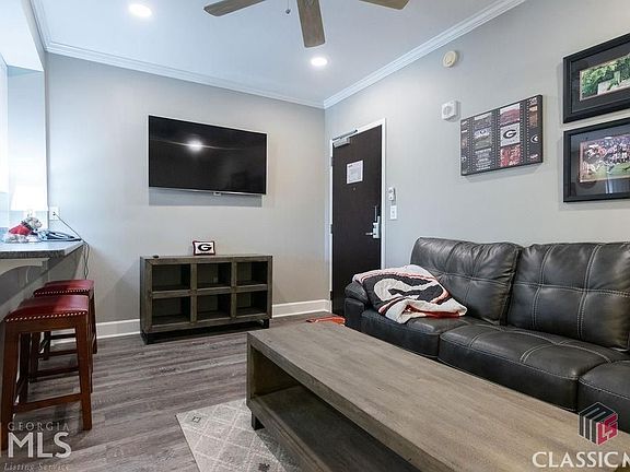 Totally renovated and completely fully furnished One Bedroom One Bath GAMEDAY 608. All new furniture, SS appliances, lighting & plumbing fixtures, paint, & new tile in bath with solid glass shower door. View to North/ Clayton Street. One numbered, reserved parking space in the covered on site deck. Located on the northern side with Downtown Athens view. GAMEDAY condos are fully furnished with all the furniture, linens, appliances, electronics, and household items included in the price. Optional on-site management company will lease the condo for you when you are not there. Walk to Sanford Stadium and UGA campus. Association dues cover water, sewer, trash pick up, common area maintenance, insurance on building, hi-speed internet access, extended satellite television, security, and parking. Parking space numbered, reserved, covered in deck on-site.