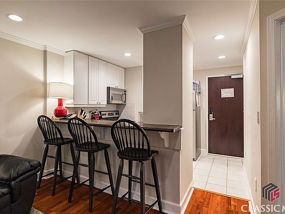 GAMEDAY Condo Suite 720 features two bedrooms, two bathrooms, and a western facing view toward Milledge Avenue/West. Upgrades include; hardwood flooring in living area, white cabinetry with stainless steel appliances, granite countertops, and some crown molding. All GAMEDAY condos are fully furnished with all furniture, appliances, electronics, and household items included in the price. Georgia's GAMEDAY Center is the only property in Athens, GA with 24/7 Front Desk staff acting as concierge, on site housekeeping and on site handyman. Security cameras throughout the building and 5 level on-site parking deck. GAMEDAY is also the only hotel-condominium in Athens. OPTIONAL on-site management company will lease the condo for you when are not there. The on-site management company lesses nightly, weekly, monthly, and long term. Walk to Sanford Stadium and UGA campus. Association dues cover water, sewer, trash pick up, common area maintenance, insurance on building, hi-speed internet access, extended satellite television, security, and parking.