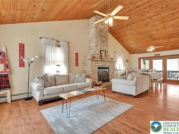This stunning Summit Hill ranch home is located on a quiet street with gorgeous mountain views! This meticulously crafted home features 3 bedrooms, 2.5 baths, and premium construction with 2x6 exterior walls, vaulted ceilings, and an expansive 5 ft wide hallway. The inviting living room captivates with a dramatic stone fireplace and vaulted ceiling, perfect for cozy evenings. The recently renovated kitchen dazzles with sleek granite countertops and a stylish backsplash. Unwind in the luxurious master bedroom, complete with a walk-in closet and master bath featuring a walk-in shower and whirlpool tub. The finished lower level offers a generous family room with a wet bar, a convenient half bath, laundry room, and a versatile office space. Step outside to relax on the elevated deck or charming paver patio, soaking in the tranquil surroundings. Perfectly positioned near state game lands, Hickory Run State Park, Jim Thorpe, top ski resorts, Kalahari Resort, Pocono Raceway, and more, this home blends luxury with adventure. A must-see gem—schedule your tour today! Parcel 123D-52-A1 is included in sale.