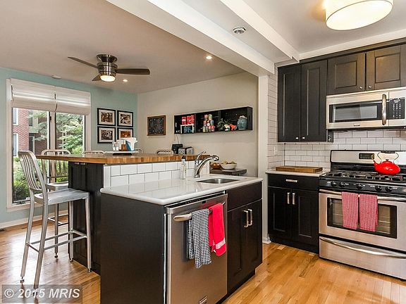 Tastefully & thoughtfully updated EOG town house in the heart of Bolton Hill. Home has so much going for it including off street parking, opened up gourmet kitchen, spacious living room w/fireplace & glass doors leading onto private back yard, finished basement w/full bath & guest bedroom/study, open play area, great master bedroom suite, plus two further bedrooms & full bathroom. A true gem!