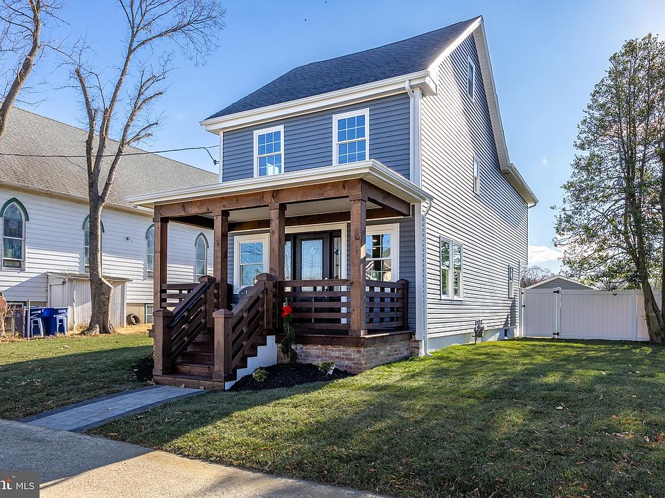 REHABBED, RENOVATED & READY TO GO! This lovely 4 bedroom, 2.5 bath home located in desirable Mount Holly is a real stunner! You will be so impressed walking up to the gorgeous, quaint, covered front porch with quality woodwork, recessed lighting and curb appeal galore! The main great room is an Entertainer's dream with brand new large, open kitchen featuring: raised panel white cabinetry w/soft close drawers, granite countertops, undermount sink, peninsula island/breakfast bar, pendant lights, recessed lighting, BRAND-NEW Stainless-Steel Appliances, decorative tile backsplash. Convenient Main Floor 1/2 bath. 3 nicely sized bedrooms on the 2nd Floor feature new carpeting, ceiling fans and/or recessed lighting. Spa like upstairs full bathrooms are both roomy with new tub & decorative tile tub surround, ceramic tile floors, new toilets, new vanities, recessed lighting. Walk up to the 3rd Floor bedroom which offers loads of other possibilities: office, teen suite, etc. Cute paver patio off the backdoor overlooking the level, clear, fully fenced LARGE backyard, complete with new sod. New 2+ car concrete driveway. Roomy shed with concrete pad. Now, comes all the NEW! NEW Windows! NEW Vinyl Siding. NEW Roof. New HVAC. NEW Hot Water Heater. NEW Electric. NEW Plumbing. Close to major roads, schools, Joint Base MDL. MAKE YOUR APPOINTMENT TODAY!