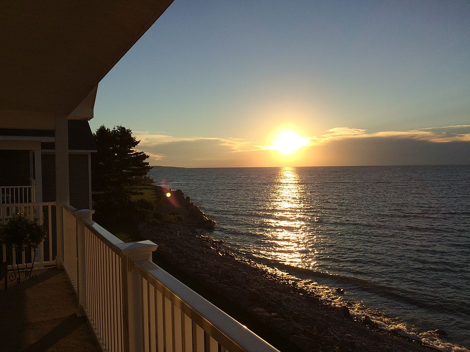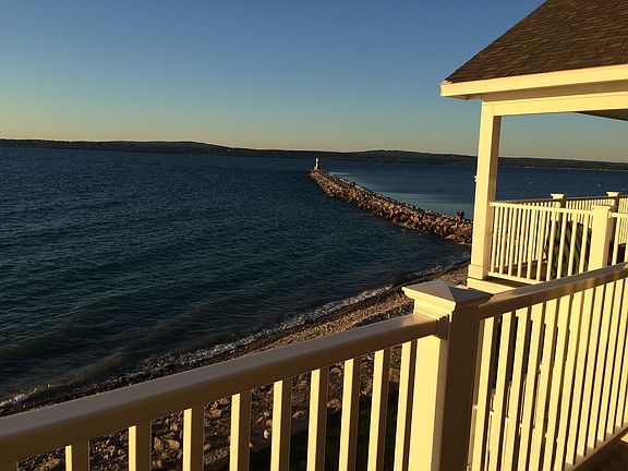 Unique in town Lake Michigan condo with sunset views. Spend summer days and evenings on the huge covered top floor porch . Enjoy vaulted ceilings, a wood fireplace, updated kitchen and open floor plan. Walk to the marina, shops and restaurants. This is desirsable third floor end unit, and building has an elevator.