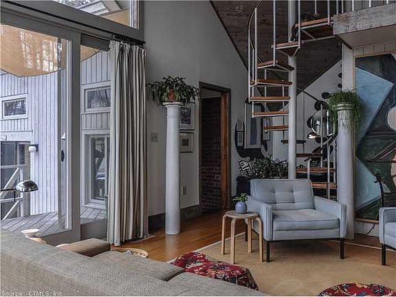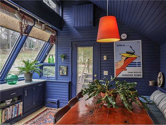 Located in Bethlehem Ct., a small town in the Litchfield Hills is this artsy, eclectic cottage which has never before been on the market. It features a living room with two story ceilings and walls of glass to take in the views. All rooms have vaulted ceilings and there are sliding doors to the outside in most rooms. Most floors are wood with cork in the kitchen and loft. It has an open 3+ acre lot with great views to the east. A large deck gives you extra space for entertaining. Close to Litchfield, Washington and Woodbury where you can experience great restaurants, shops, art galleries and antique shops. Enjoy swimming and kayaking at the town beach on Long Meadow Pond. This would be a great weekend escape from the city as well as a full time home. Located only 2 hours from NYC!