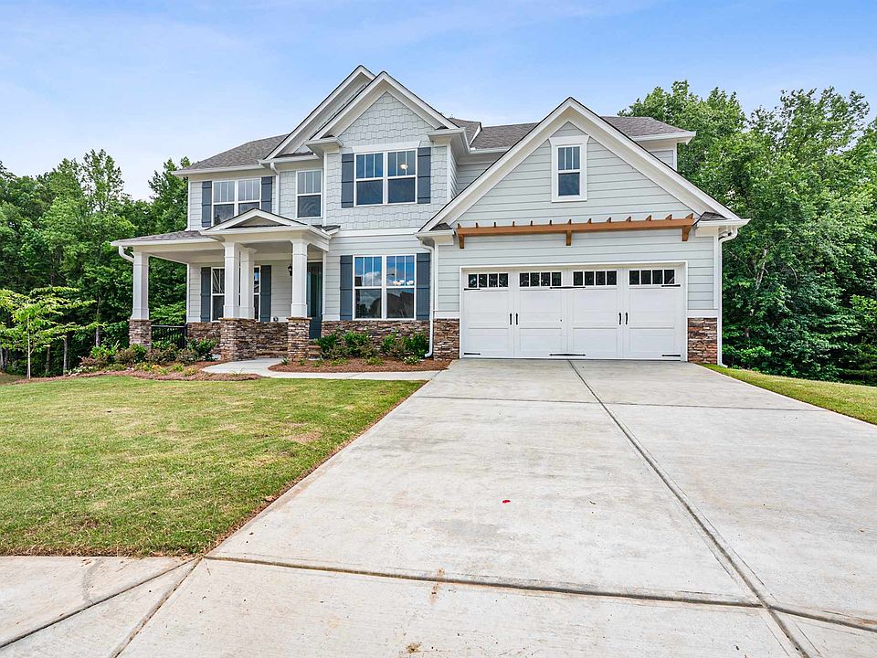 Our Harrison Plan features 4 bedrooms and 2 full baths upstairs. Main level features LVP flooring, Formal dining, Great room with brick fireplace and the ever popular coffered ceiling, Granite tops on an island kitchen with white maple upgraded cabinets, plus first floor laundry and a powder room. Master bedroom with sitting area and a spa like bath with tile shower. enjoy our game day porch with outdoor fireplace! 2 car garage and a full unfinished basement. Photos are of another finished home. This is a new start, be ready May/June 2021.
