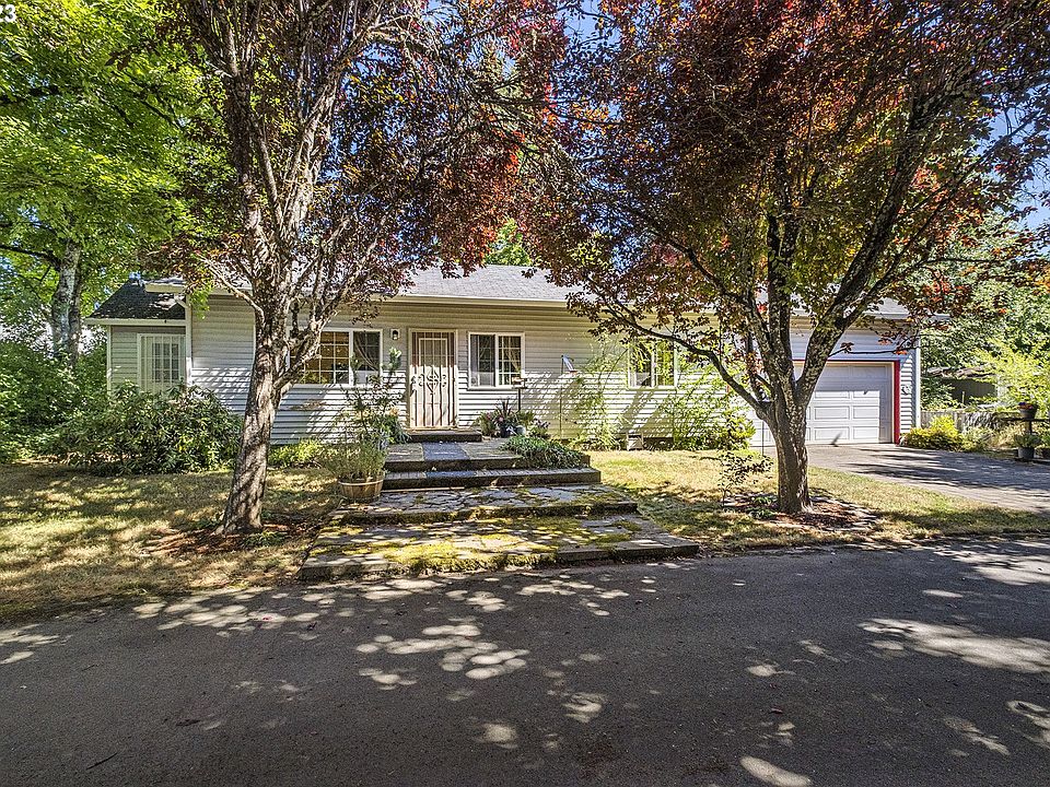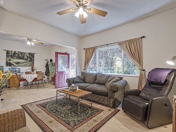 Charming 2003-built home on a .84 parcel in Forest Grove. This cozy rustic live in the country feel property features 2 bedrooms with ceiling fans, laminate flooring, and high ceilings. The kitchen offers a pantry, tile counters, and newer stainless appliances. Enjoy vinyl windows, laminate floors in the dining and living room. A sunroom/craft room with a separate entrance adds versatility. Upgraded bathroom with one-piece fiberglass shower tub combo, new toilet, light, and paint. The oversized garage with 14' ceilings provides ample storage and a new 2022 door. Just blocks from Pacific University and downtown farmers market. Explore potential with room for a shop or outbuildings. Fully fenced and gated for privacy. Bonus features include a Tuff Shed, Hazelnut, Cherry, Plum trees, blueberry, blackberry shrubs, and a roughly constructed Greenhouse. Low taxes. Book an appointment to view this property today and stay connected with high-speed internet (WIFI).