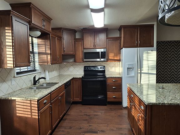 Located in a great neighborhood, this update 4 bedroom 2 bath home comes complete with vaulted ceilings in the living area and kitchen, large bedrooms, a 2 car garage, a storage building, and a fenced yard with a dog run.