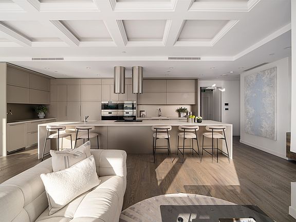 Sensational Full-Floor Residence @ The Smithe. An expansive interior of 4,591 sf comprising 5 bedrooms and 6 luxurious bathrooms, 2 w/ steam showers and 1 w/ a dry sauna. Panoramic 360° views of the ocean, mountains and cityscape can be appreciated and outdoor living is fully realized w/ 1,697 sf of wrap-around terraces equipped w/ water, gas, & ceiling heat lamps. Extensive custom millwork, electronic blinds, coffered ceilings & a 300-bottle temperature-controlled wine room—a dream chef's kitchen with Binova of Italy cabinetry, a 17’ island, & equipped with Wolf & Sub-Zero. Interior by the talented Trepp Design and developed by reputable Boffo Developments, this home and development is a true stand out—over 4,000 sf of fine amenities, attentive concierge, 4 EV-equipped parking and more.