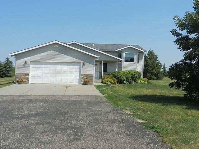 1.3 acres surrounded by lilac & pine trees and paved roads right to the door! Take a look today at this 2+2 bdrm-2 bath home with dbl attached garage, plus room to build that extra garage or shop! Kitchen has newer stainless appliances, master bdrm has nice walk in closet and the whole house is bright and sunny with warm southern exposure. The attached garage is heated, has water & floor drain and a doggy door leading to the back yard kennel that goes with the home. Both baths have new faucets & toilets & main bath has new flooring. Enjoy those summer evenings playing horseshoes and then relax next to the firepit in the back yard. Take a look today!