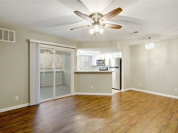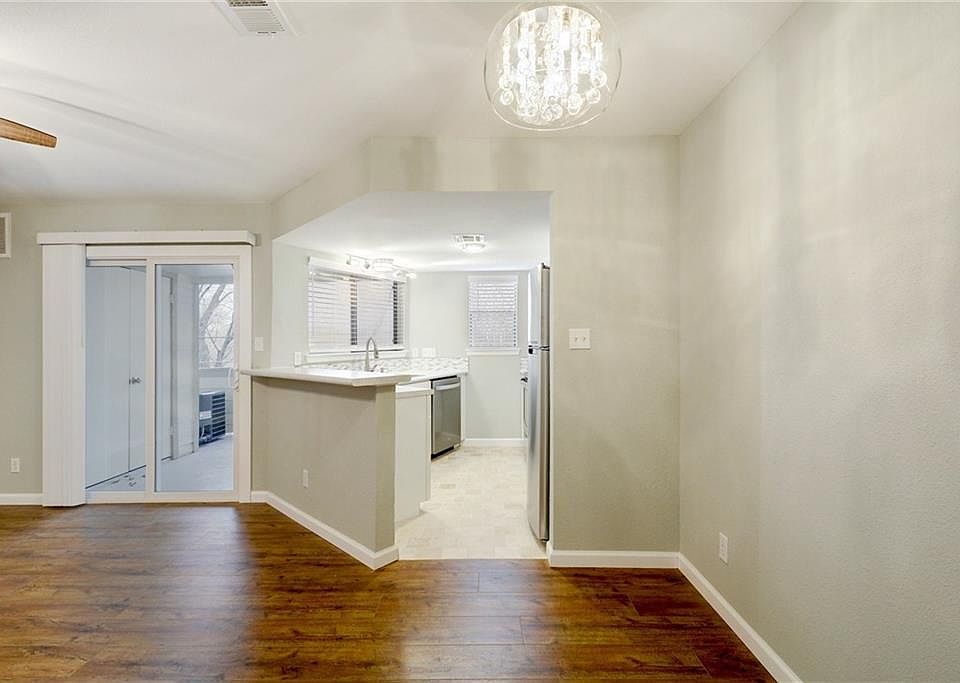Beautifully renovated condo in the perfect location! Minutes from downtown, Lady Bird Lake, Oracle, and airport. Updated cabinets, counter-tops in kitchen & bath, amazing wood flooring in living area/bedroom/closets. Travertine tile is in kitchen & bath, and a large balcony with washer & dryer is conveniently included as well. This unit has Stainless steel appliances, (with refrigerator), a full-sized dishwasher, updated sliding glass patio door, light fixtures, hardware, and ceiling fans. Window treatments have 2" faux wood blinds, a walk-in bedroom closet and Google fiber as well! The sparkling pool is always clean, inviting, and open year-round! Water is a $40.00 flat fee. Active security cameras are in place; this is a gated complex, and minutes from downtown!