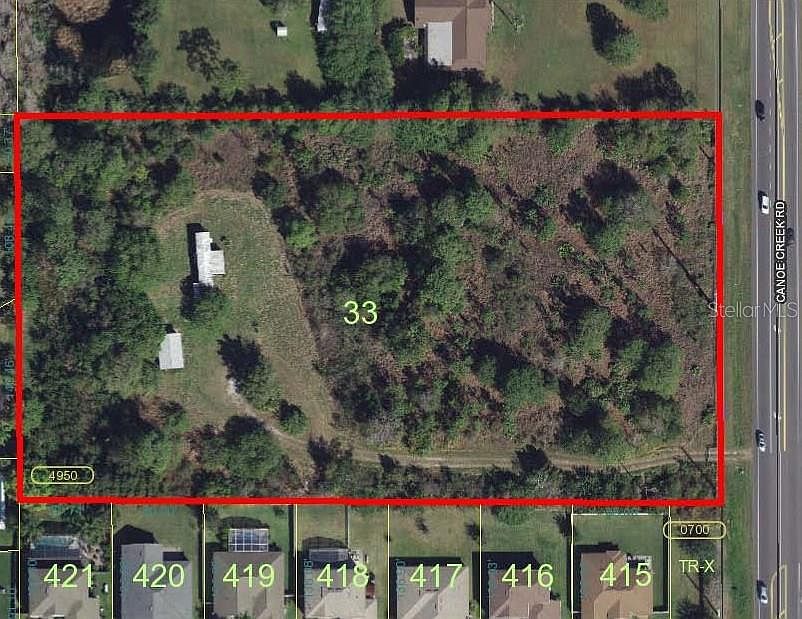 Outstanding Location for Residential Development or to Divide and Build 2 Homes - This 4.6 acre tract has approximately 330' of paved road frontage on Canoe Creek Rd. City water is currently connected to the mobile home. City water and sewer is available at the property line. The land is somewhat wooded and appears to be high and dry. The FUTURE LAND USE IS LOW DENSITY RESIDENTIAL OR 3-8 DWELLINGS PER ACRE. Buyer is to verify all information pertinent to making a decision to purchase. Located just north of intersection of New Nolte Rd and close to shopping, schools and employment.