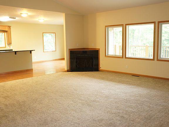 Beautifully finished new build on 5+ acres, serene & private! Features include an open floor plan, 5 BR's, 3 1/2 Baths and a full finished walkout BSMT. Granite counter tops in the Kitchen & Baths, oak floors in the Kitchen/Dining areas, maple cabinets, large pantry, 1st floor laundry and Den/Office, ceramic flooring in all baths, and oak doors & trim. Dining area will accommodate a large table, and the breakfast bar seats 4. 1st floor Master BR includes a deluxe Master Bath w/ jetted tub, shower, double basin vanity, and large walk-in closet. The finished walkout basement has a large Rec Room area w/ additional cabinets/counter space/sink, great for entertaining or relaxing! Covered deck and concrete patio, extra attached lower level storage, big yard, wooded acreage and much more!