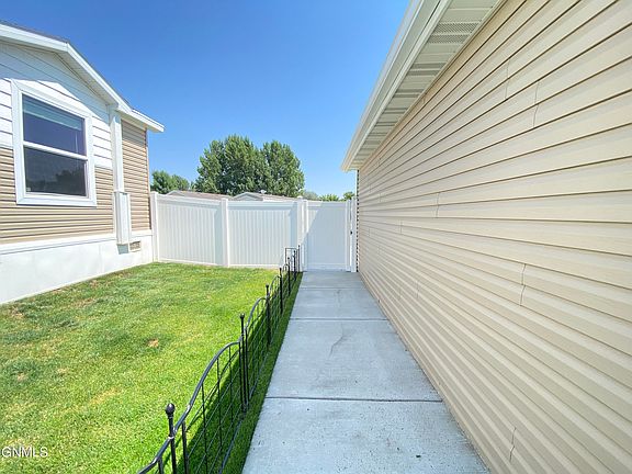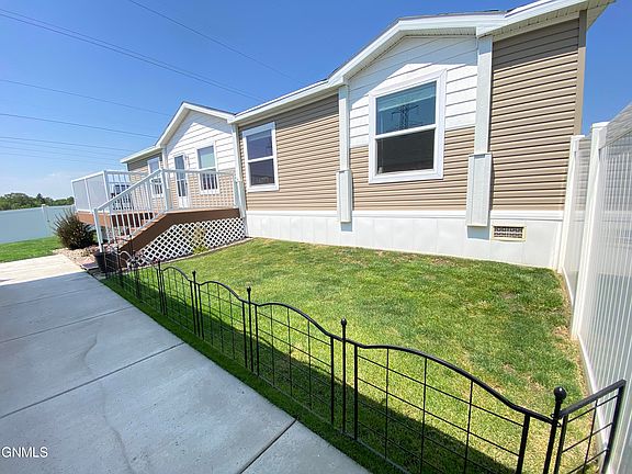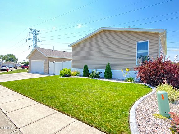 This manufactured home will check off all your boxes! Location! Beautiful yard! Privacy! Gorgeous decor! You will appreciate the privacy from the moment you open the security gate. The lot has a 6' white privacy fence and beyond the fence is a large empty field so you have no backyard neighbors! Great place to run the dogs or go for a walk. Complete sprinkler system. Once you walk in the yard you can see the nice 10x16 maintenance free deck and 10x10 concrete patio for outdoor entertaining or just some peaceful relaxation! The interior is fully updated with neutral flooring and mostly light grey paint throughout. The fully equipped kitchen is MADE for entertaining and cooking! Rich espresso stained cabinets with brushed nickel jewelry really adds richness. The island is large with handy deep drawers. So much storage and counter space. The large window in the dining area brings in tons of light. For additional privacy, the primary suite is on one end of home with two additional bedrooms opposite end. The primary bath has a LUXURIOUS 4X6 tiled shower with a rain shower head and handheld. But for those crazy days, soak peacefully in the large freestanding bathtub. Dual vanity sinks complete this thoughtfully planned bath. Adding to that is a large walk in closet. At the other end of home are the two bedrooms, laundry with exit door, and another full bath. The detached garage is OVERSIZED, INSULATED and HEATED! Shelving for additional storage. The driveway has an additional parking pad. Gutters were added on home and garage for additional protection. The landscaping is superior with rock, concrete curbing and perennials front and side for low maintenence and great curb appeal. The location of the home is situated in a cul de sac offering low traffic. Transferable warranty to new buyer. Between location, quality of home and exterior updates this will not last long. Call your favorite Realtor today for a showing!