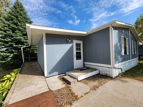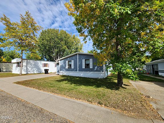 Spacious double-wide in a professionally managed park in Northeast Bismarck. More than 1500 square feet means plenty of room to live your best life! Prior to entering the living room with vaulted ceilings, you'll pass through a fully finished entry that provides space to store all of your boots, coats, backpacks and more. Not included in the total square footage, the entry adds 120 square feet to this home's footprint. Large windows wash the living room in natural light. There is plenty of room for traditional living room furniture, plus a formal dining room table to complement a built-in hutch. The primary bedroom is expansive and includes a full bath. There are two additional bedrooms on the opposite end of the home creating a nice separation of space and privacy. The home's second bath is conveniently located near the two bedrooms. The kitchen features a center island, pendant lights and stainless steel appliances. In additional to bar seating, the kitchen has space to accommodate a kitchen table. A wood deck is tucked away on the side of the home and surrounded by mature trees. The community park is just around the corner. This house is ready for you to make it your home. Schedule a tour today!
