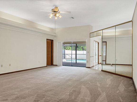 Move-in ready, three bedroom, two bath, pool home with nearly 2700 square feet of living. Features of this home include 10 foot ceilings, formal dining room with crown molding and serving bar, living room with pocket sliding glass doors that open up to the lanai, large family room, eat in kitchen with breakfast nook, all three bedrooms have walk in closets, master bath with dual sinks and jetted tub, laundry room with laundry tub, intercom system, security system, double door entryway is screen enclosed, spacious lanai with 28x14 inground pool that's screen enclosed, new pool pump, new vinyl privacy fence in the back yard, storage shed, and the HVAC system was replaced in 2017.