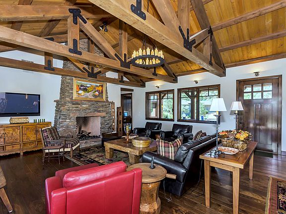 A unique home perfectly situated overlooking the 5th fairway with awesome golf course and mountain views. From the moment you enter the pavered drive leading to the Craftsman style entry and 3 car garage you know this home is going to be special. Upon entering you immediately notice the magnificent king post ceiling trusses, the imposing hand stacked stone gas fireplace and the views from the Jelwyn windows. All hardwood flooring on the main level showcases the open floor plan. The kitchen features an extra large center island with seamless, gorgeous granite. There is an impressive stainless steel hood over a gas cooktop, double 30'' ovens with warming drawer, refrigerator drawers, and a wine cooler. The Master suite, also with breathtaking views, is on the main level.