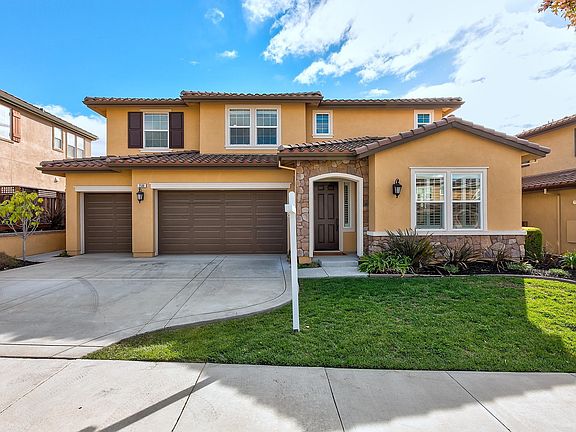Stunning North facing home in Positano Hills built in 2011 by Braddock & Logan. 5 beds, 3.5 baths, huge loft, bedroom suite on first level, 3 cars attached garage, big backyard with grapevines and fruit trees. Spectacular view of the rolling hills. Luxurious entry with hardwood floors that guide you to the formal living/dining room. Gourmet kitchen with stainless appliances, refrigerator, premium cabinets, slab granite counters, large island, breakfast nook, deep walk-in pantry. Spacious family room with gas fireplace. Bright and airy home with plenty of windows. Large master suite with luxurious master bath, stall shower, soaking tub, huge walk-in closet. In-laundry room with washer and dryer. Upgrades include plantation shutters, custom cabinets, built-in cabinets in hallway, two tone paint, ceiling lights in all bedrooms, Dolby 5.2 system with 5 Bowers and Wilkins surround speakers, day light sensor. Walk to Positano Hills Park, Amador Valley Elementary. Close to all amenities.....