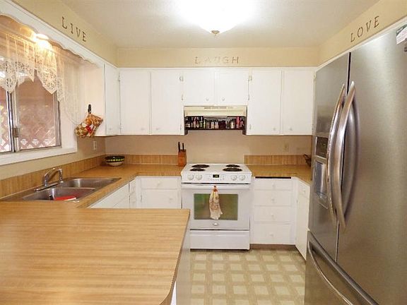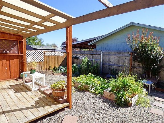 Wonderful single-story, three bedroom, one-and-a-half bathroom home! Large picture window in living room. Dining area has French doors that lead out to a backyard with covered patio, garden beds, and large side yard. Open kitchen with great storage, newer stainless steel refrigerator, and beautiful white cabinetry. Tile countertops and tile flooring in the main bathroom. Master bedroom has its own private half bathroom. Lots of features for only $148,000!